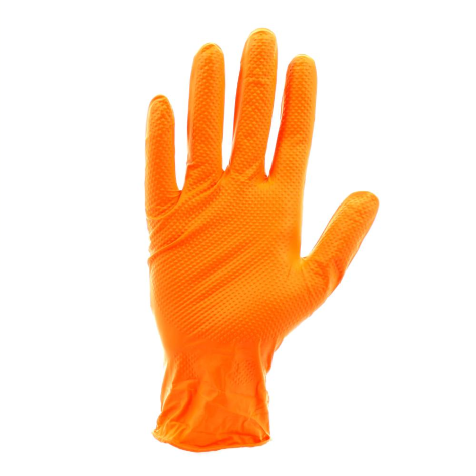 Gants en Nitrile Texturés Orange – Haute Résistance et Visibilité.